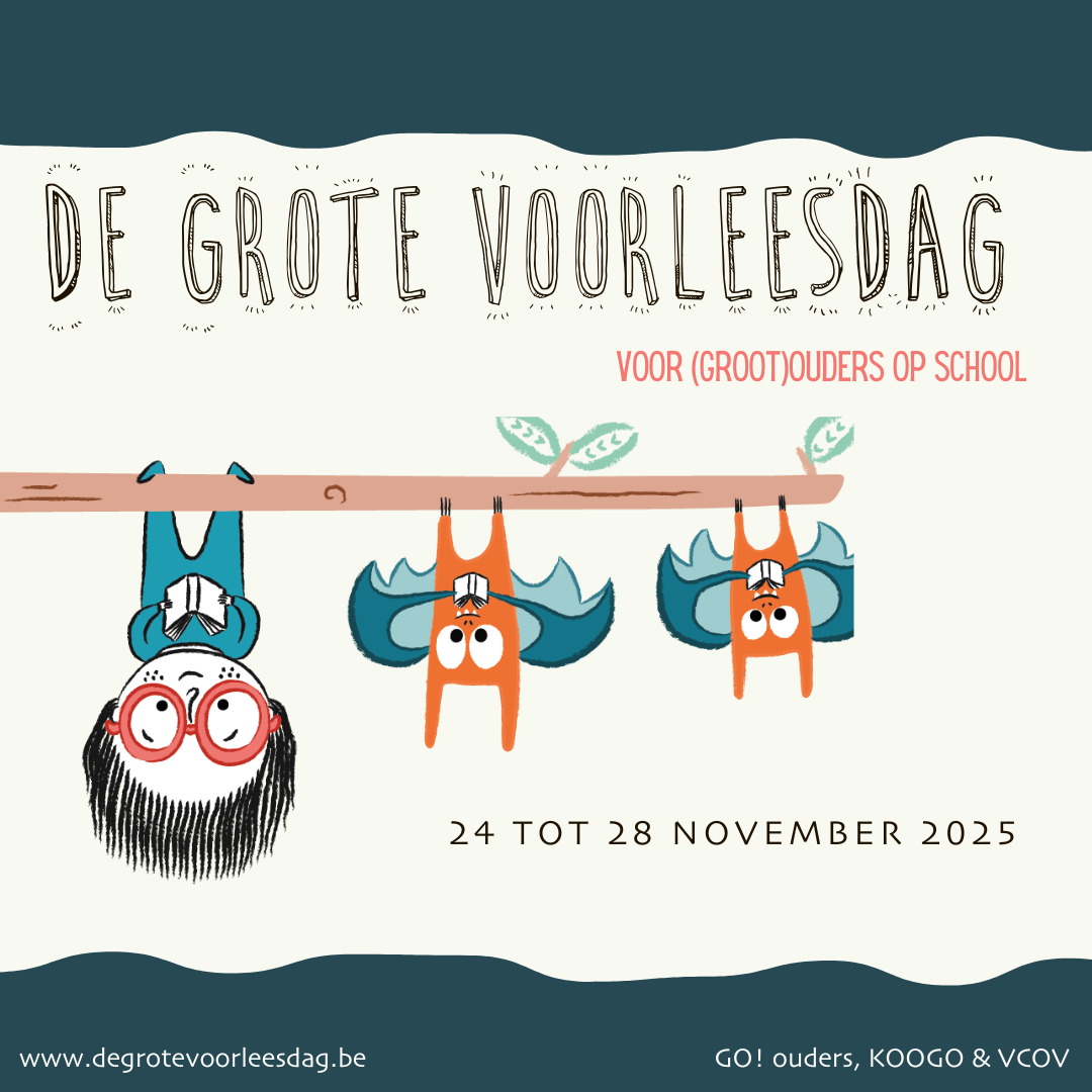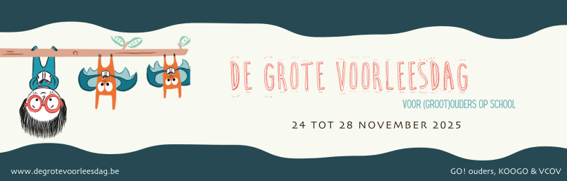 Ook dit jaar ondersteunen de drie ouderkoepels (GO! ouders, KOOGO en VCOV) ouderwerkingen en scholen bij het organiseren van de Grote Voorleesdag voor (groot)ouders op school.