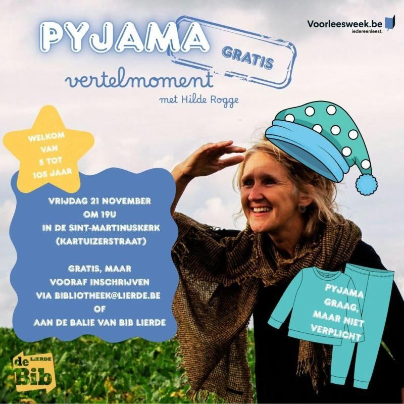 In de Sint-Martinuskerk in Lierde (Kartuizerstraat) gaat het 'Pyjama vertelmoment' door van Bib Lierde. Speciale gast en voorlezer van dienst is Hilde Rogge.