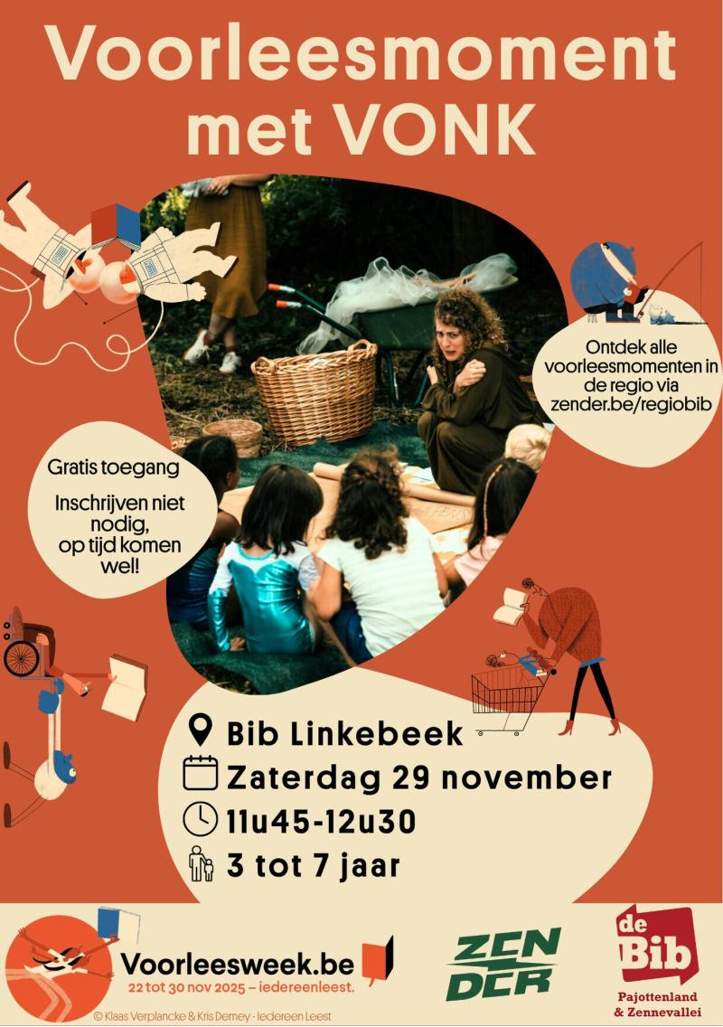 In het kader van de voorleesweek 2025 organiseert Zender een voorleesmoment in de openbare bib van Linkebeek voor kinderen van 3 tot 7 jaar.