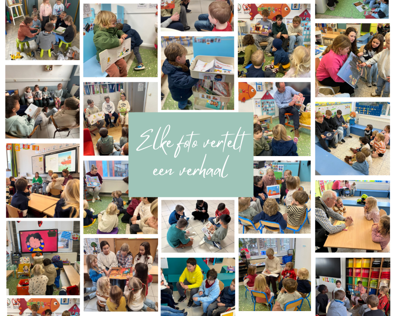Een week vol verhalen voorlezen in alle talen zit er net op: ons schoolbibje werd een plek waar jong en oud elkaar vonden tussen, door, in en dankzij boeken. Onze leerlingen genoten met volle teugen van de ouders en leraren die de meest uiteenlopende verhalen kwamen vertellen en hen zo telkens weer een beetje meenamen op een spannende, mooie of verrassend herkenbare reis. Dat smaakt naar meer!