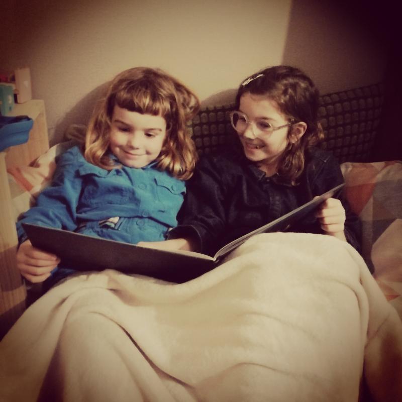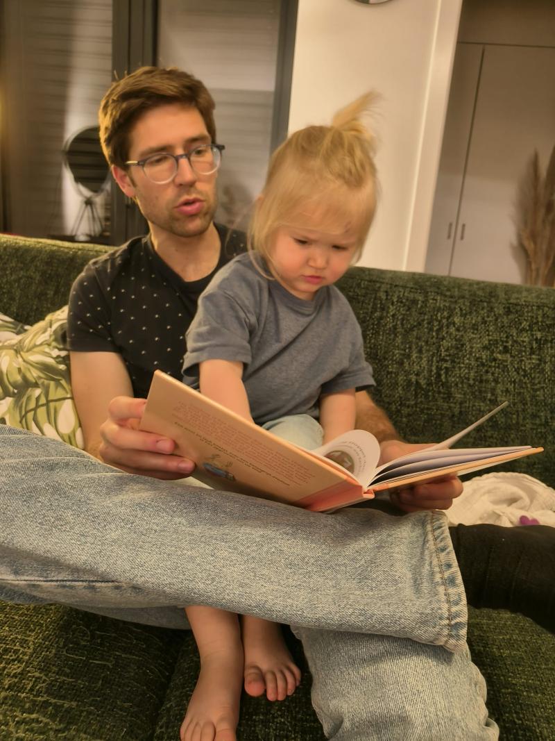 Elke dag proberen we even te lezen. Rust, ontspannen, knuffelen, samen.