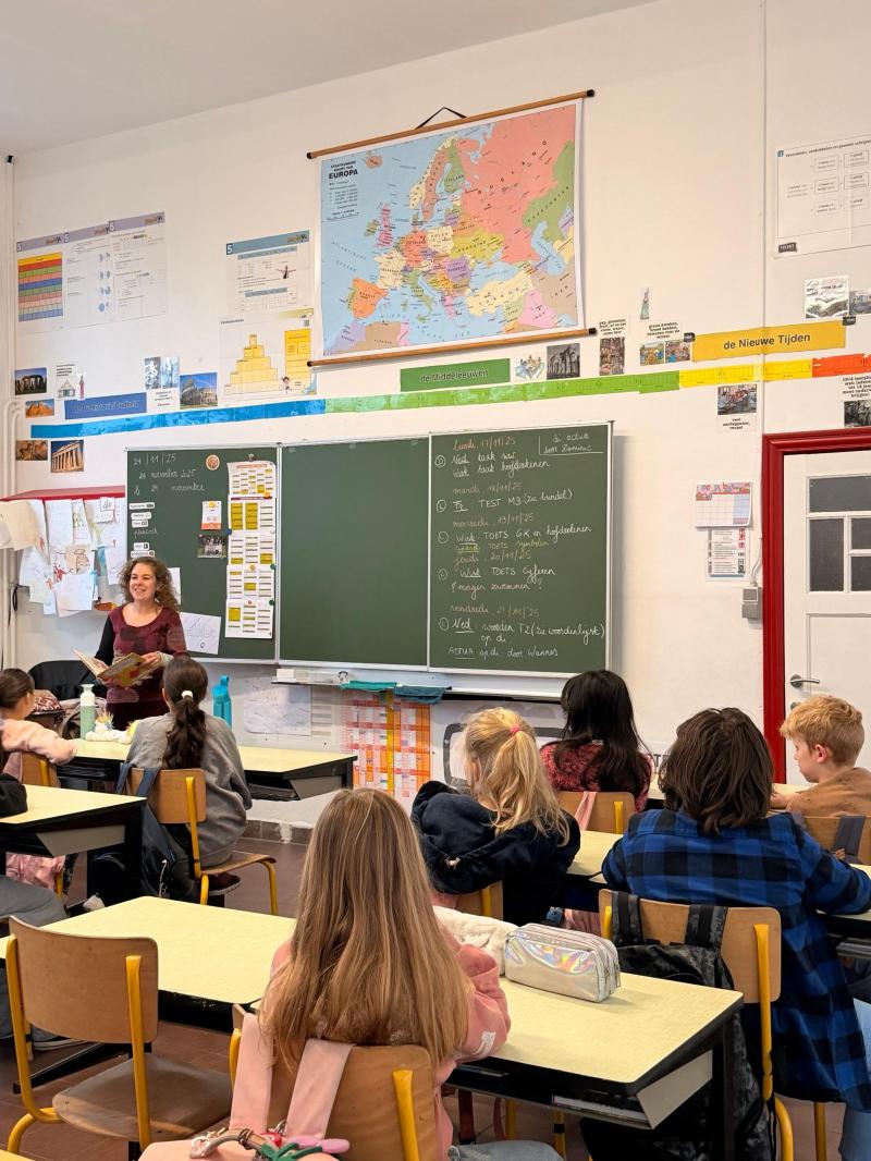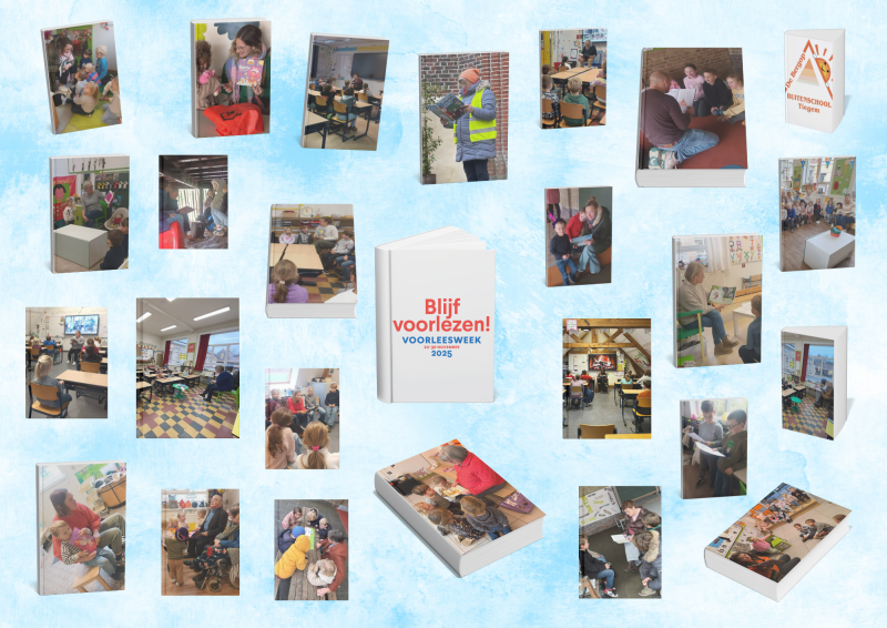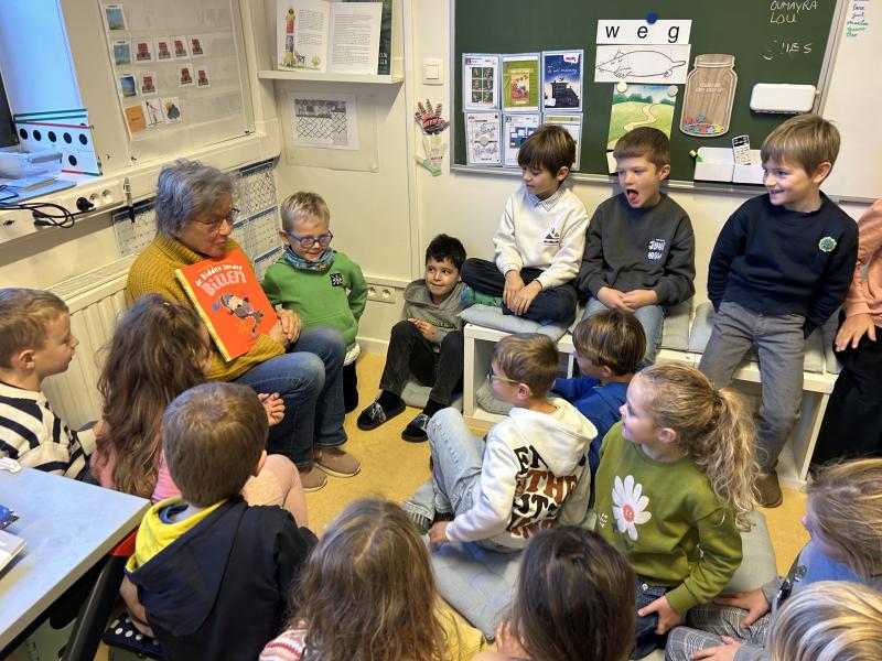 Voorlezen brengt kinderen in contact met taal, verhalen en fantasie. Het versterkt hun woordenschat, luistervaardigheid en creativiteit. Bovendien schept het warme momenten van verbondenheid tussen lezers en luisteraars. Daarom willen we op school blijven voorlezen, elke dag opnieuw, en hopelijk binnenkort ook uit nieuwe, inspirerende boeken! De foto vertelt hoe wij elke dag aan voorlezen doen.