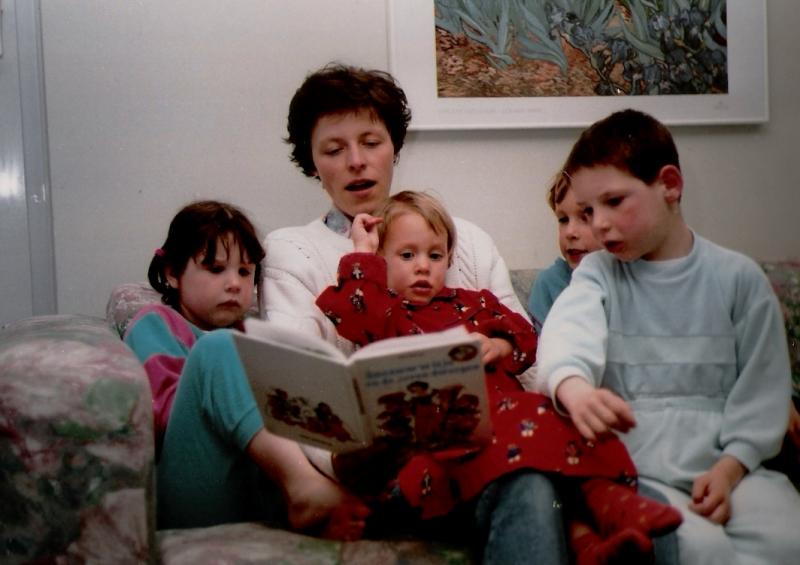 ter info op bijgaande foto ben ik jonge mama, zie je de concentratie van de kinderen, nu ben ik een jonge momi en beleven we met de kleinkinderen nog veel plezier aan het voorlezen