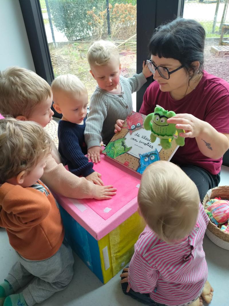 Wij lezen graag en veel voor in onze opvang, het is fijn om te zien hoe de kinderen meteen gaan klaar zitten en genieten. We vinden het belangrijk, er zit veel meer in dan enkel taalontwikkeling: rust, verbinding, samen plezier maken, fantasie, … Een mooi moment voor groot en klein.
