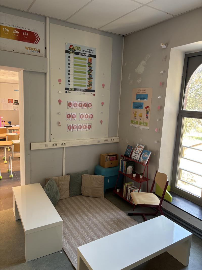 Lezen in de kinderopvang is heel belangrijk. Kinderen krijgen doorheen de dag kansen om hun taalontwikkeling te stimuleren. We starten al met voorlezen vanaf de babygroep. Bij de grotere kinderen lezen we dagelijks in de boekenhoek en werken we samen met de bibliotheek. De boekenhoek kan nog verder uitgebreid worden.